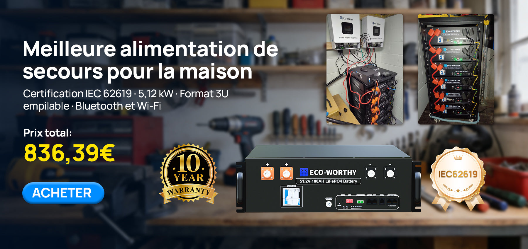 Batterie LiFePO4 48V 100Ah avec Onduleur All-in-One 3000W – Kit Solaire Autonome ECO-WORTHY