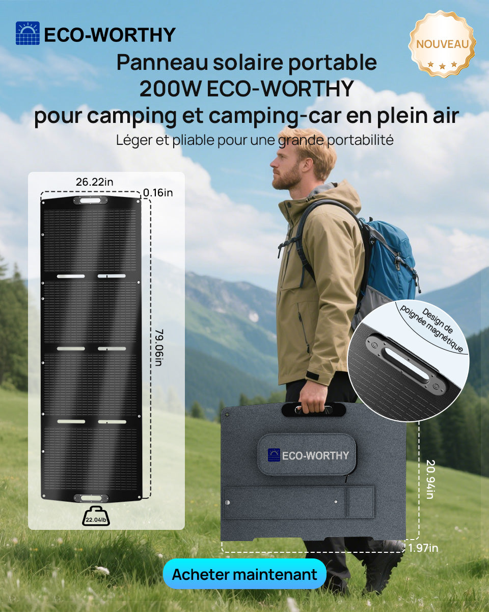 Panneau Solaire Pliable ECO-WORTHY 200W 12V Pro