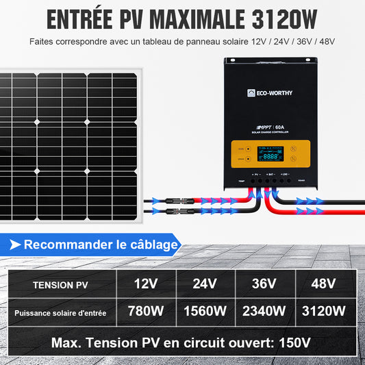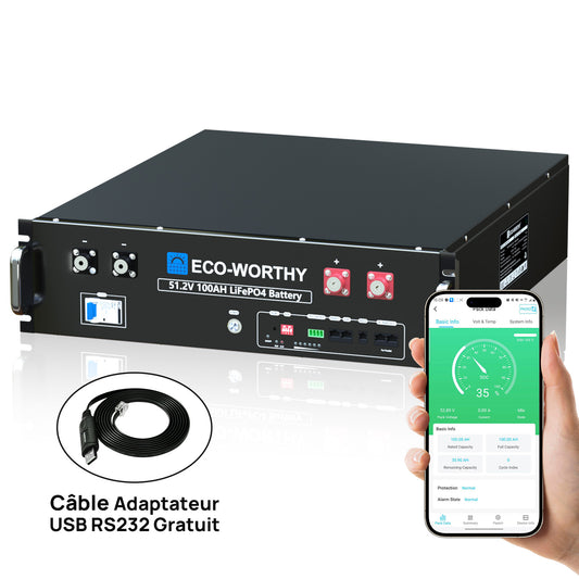 Batterie LiFePO4 48V 100Ah avec Onduleur All-in-One 3000W – Kit Solaire Autonome ECO-WORTHY