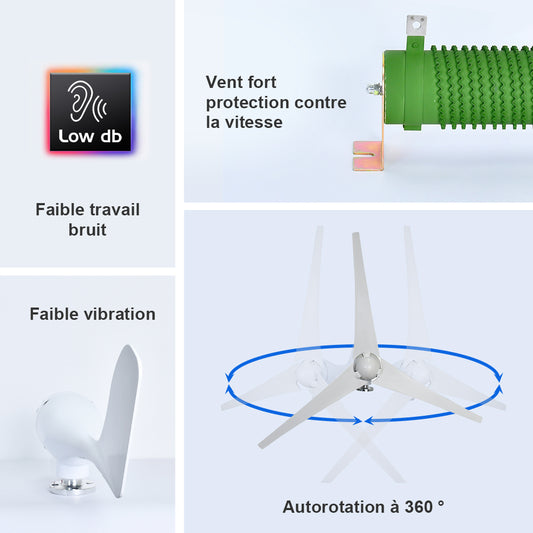 400W 12V/24V Générateur d'éolienne avec contrôleur hybride 40A