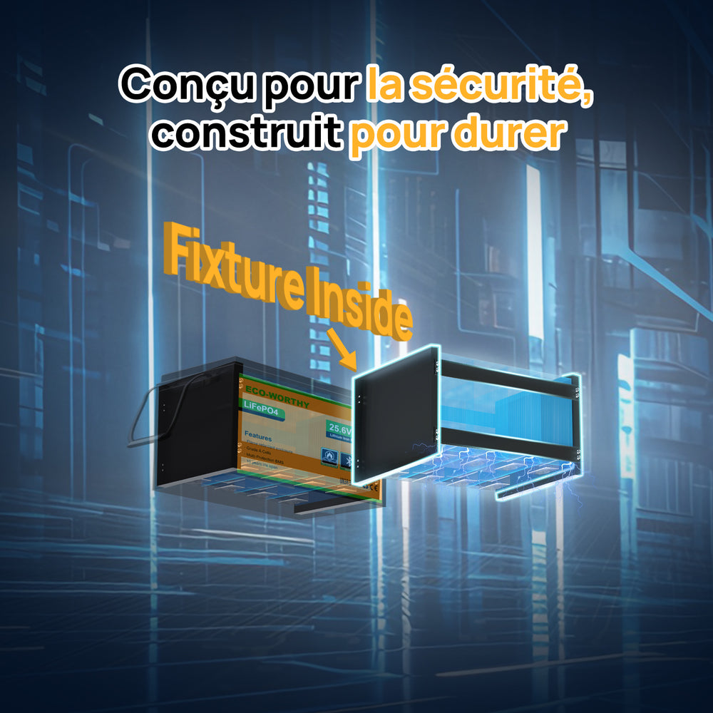 Nous utilisons des cellules prismatiques de qualité A à 100 % de REPT, garantissant 6000 cycles à 80 % de profondeur de décharge.