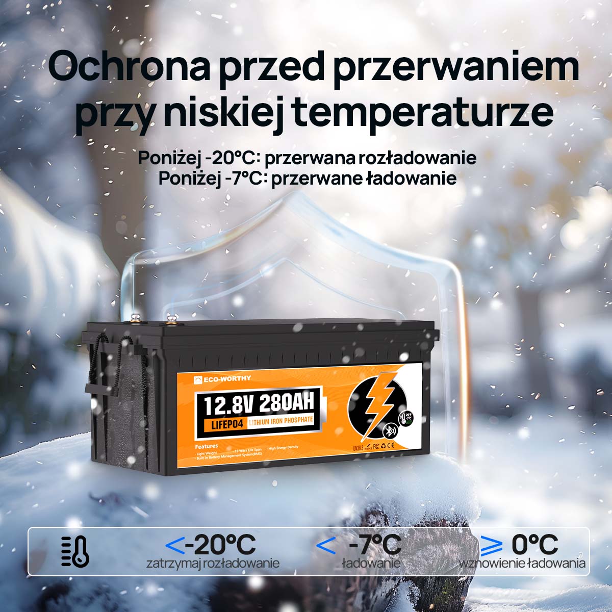 Akumulator litowy LiFePO4 12 V 280 Ah z Bluetooth i zabezpieczeniem przed niską temperaturą | ECO-WORTHY