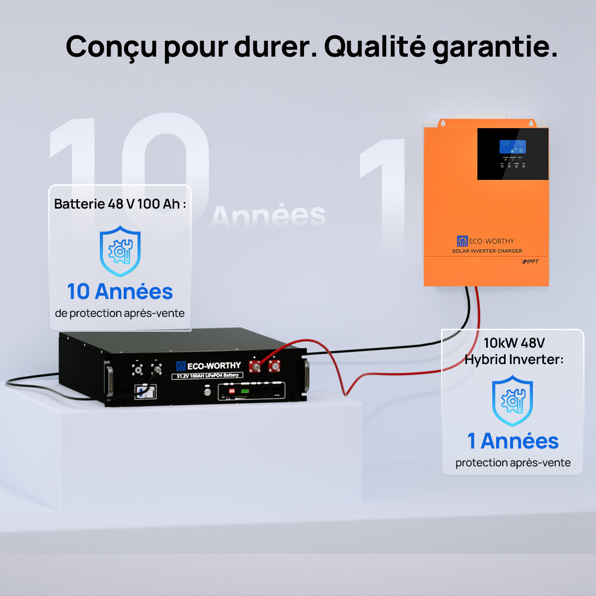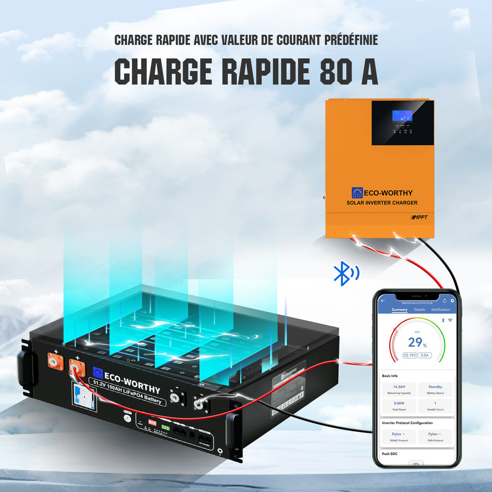 Batterie LiFePO4 48V 100Ah avec Onduleur All-in-One 5000W – Kit Solaire Autonome ECO-WORTHY