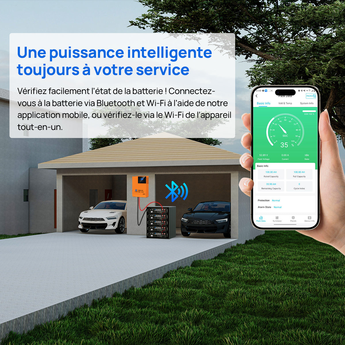 | Capacité de la batterie : 100 Ah | Énergie totale : 5120 Wh |