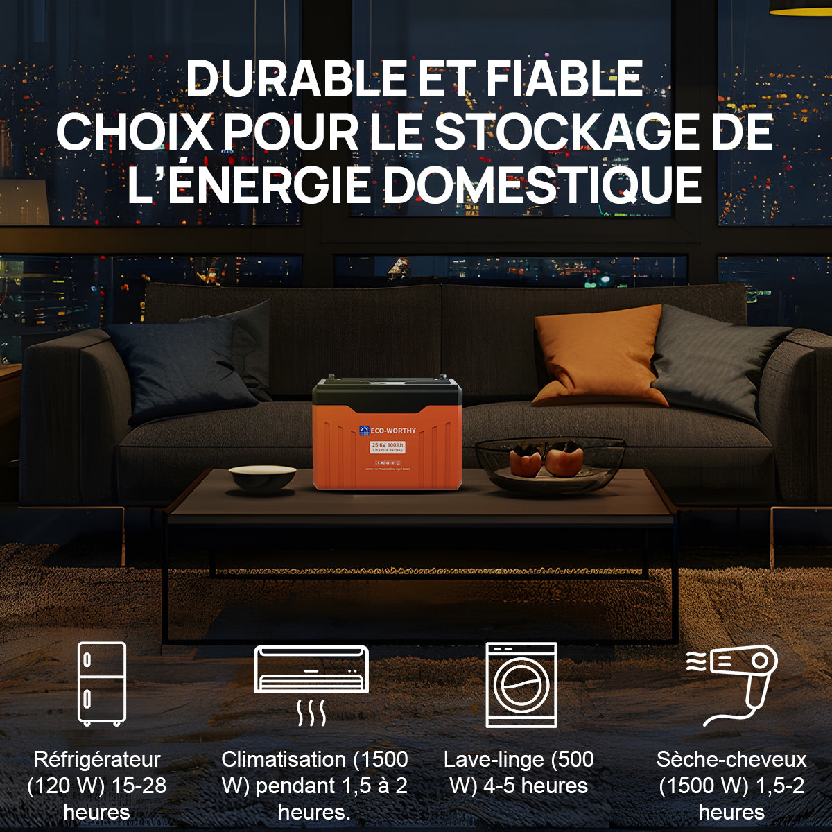 Nous utilisons des cellules prismatiques de qualité A à 100 % de REPT, garantissant 6000 cycles à 80 % de profondeur de décharge.