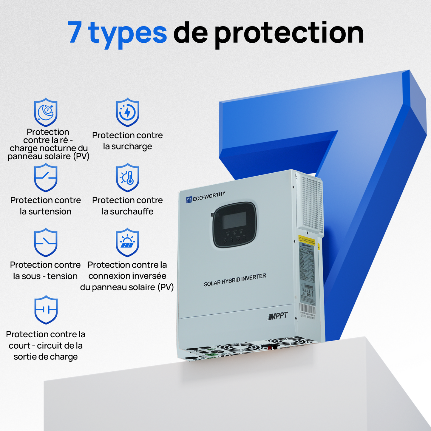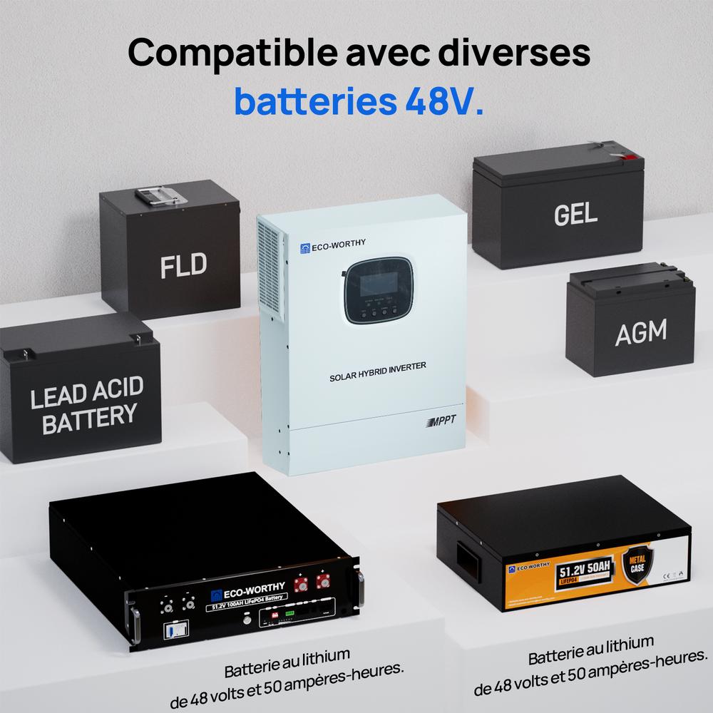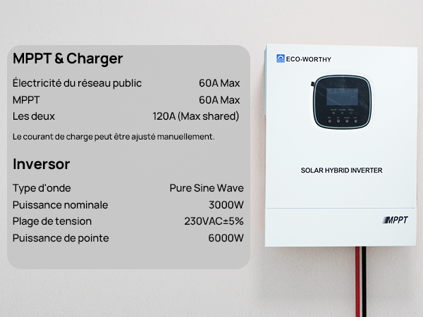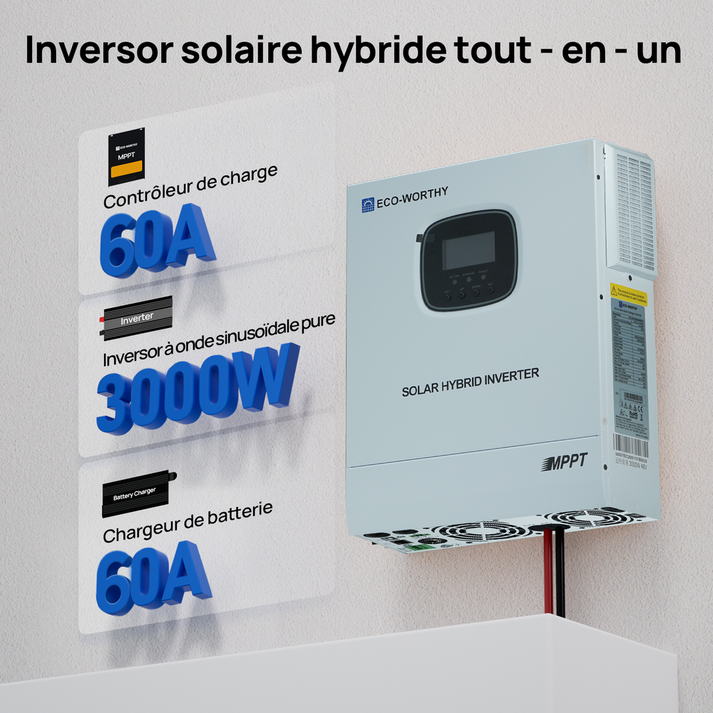 Chargeur-onduleur Solaire Tout-en-un ECO-WORTHY 48V 3000 W | MPPT 60A, Entrée PV 3400W