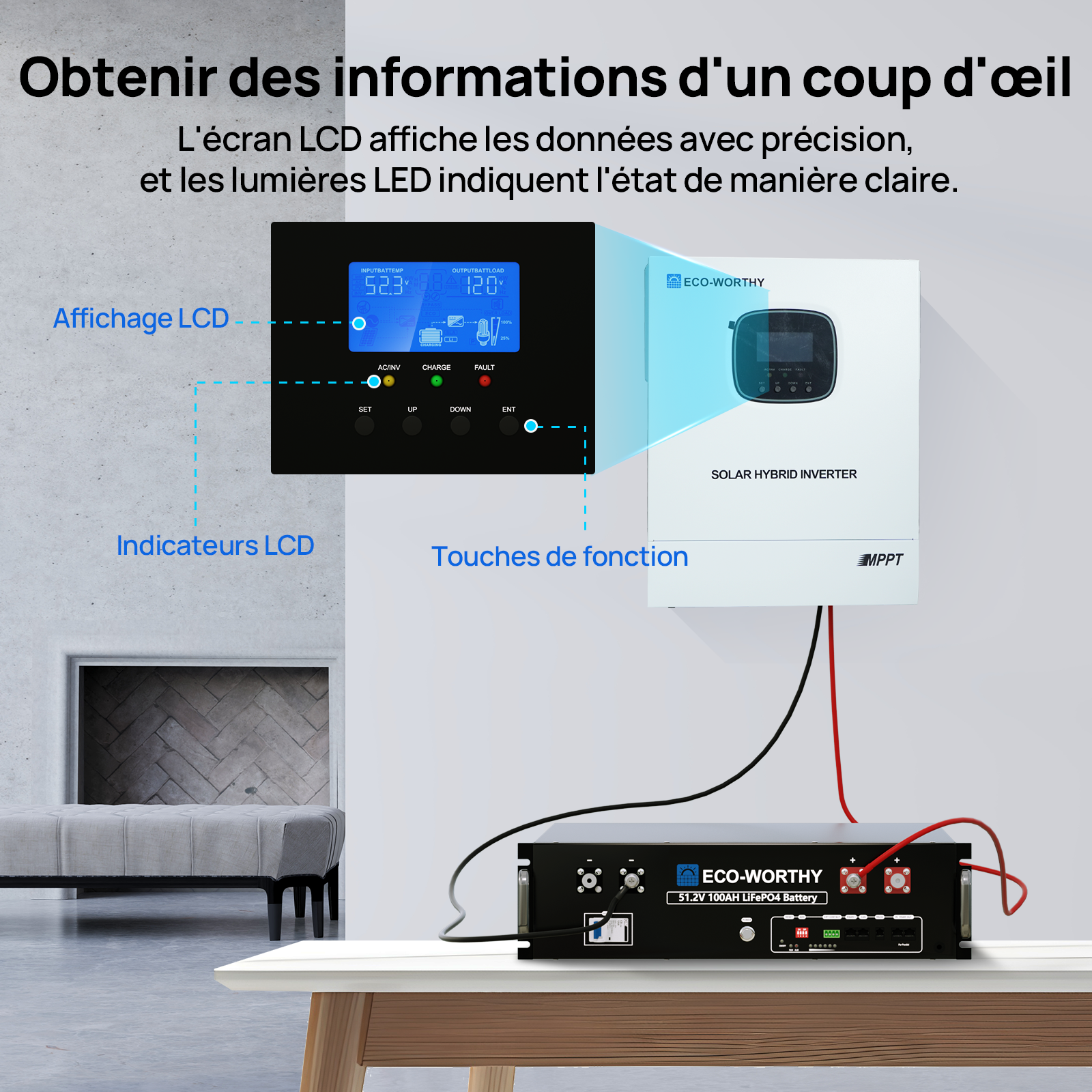 Idéal pour les systèmes d'énergie solaire dans les maisons, ateliers, chalets et installations d'énergie de secours hors réseau.