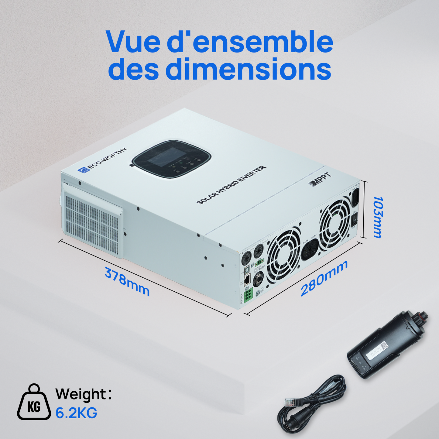 · Charge solaire MPPT 60 A avec une entrée PV jusqu'à 3 400 W et une tension à vide de 145 V